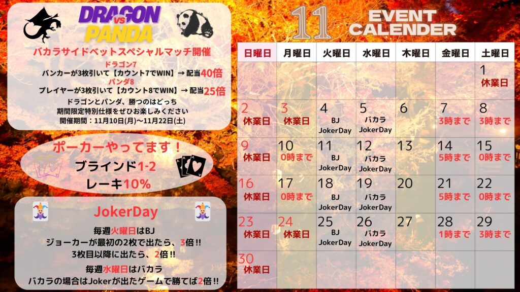 さて、11月は海外ではお馴染みのバカラのオプションルール。