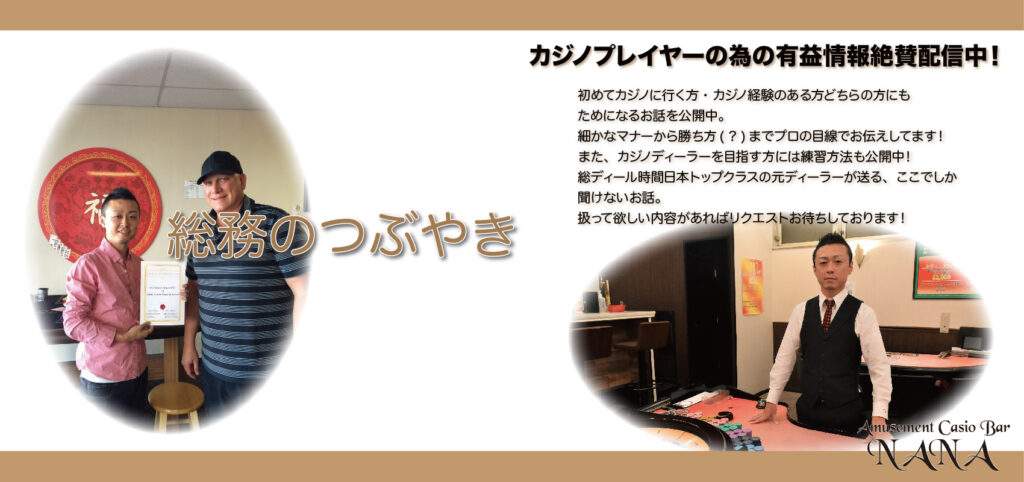 どうもどうも、手先が器用すぎてディーラー時は7つの球を投げ分けた総務島村です。 さて、長い長いタイトルですみません。もう自己満足の世界でしょ!なんて言われればそれまでなのですが、NANAのこだわりの一つ 「ディーラーの技術」について少々皆様にお... -